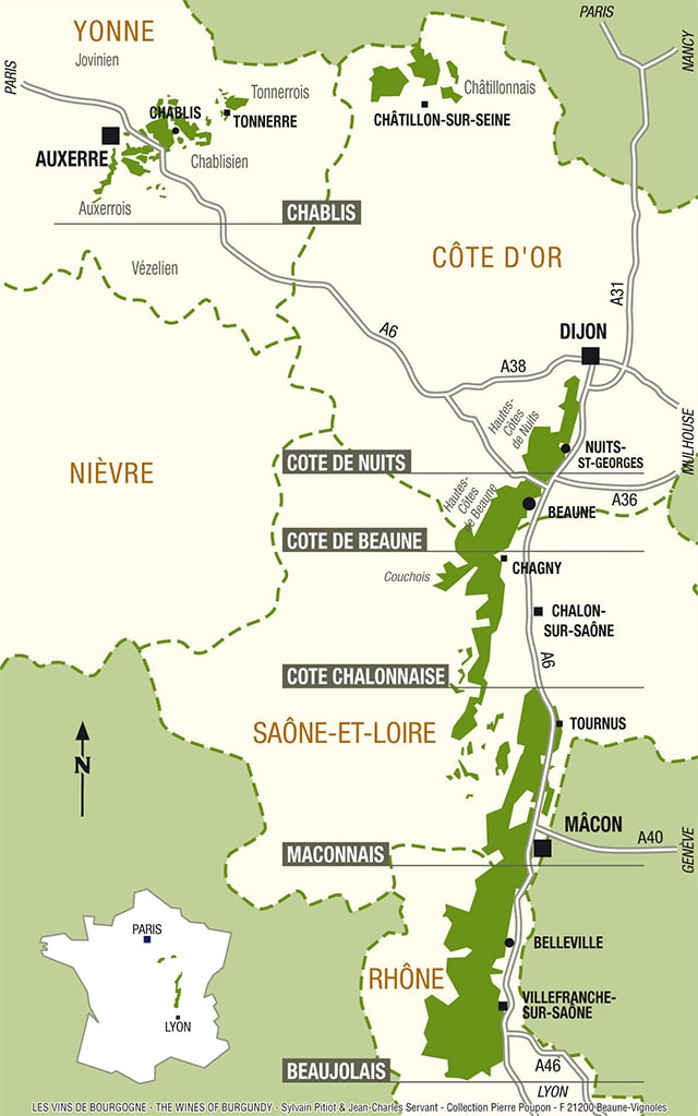 In der französischen Weinregion Burgund befinden sich einige der berühmtesten Weinberge der Welt. Dort werden Rotweine aus den Rebsorten Pinot Noir und Gamay sowie Weißweine aus den Rebsorten Chardonnay und Aligoté hergestellt. Zugelassen, aber seltener verwendet werden Pinot Gris und Pinot Blanc.